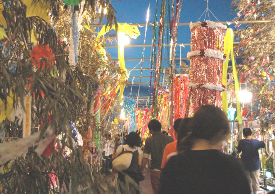 おのだ七夕花火の行事の一つである、七夕飾りコンテストの様子