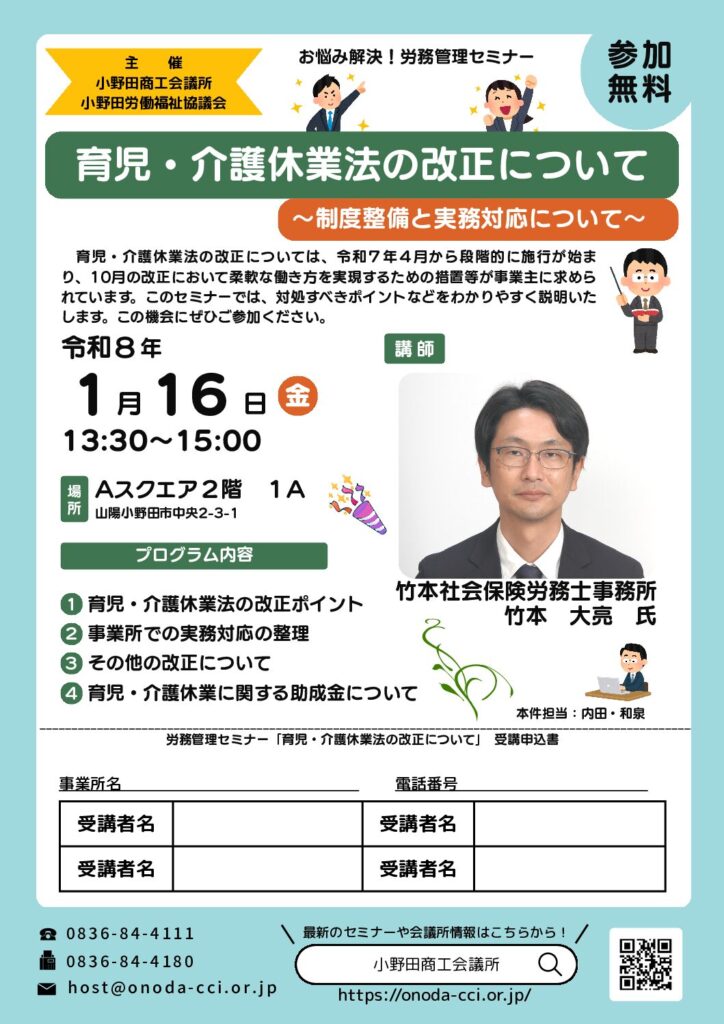 お悩み解決!労務管理セミナー「育児・介護休業法の改正について」/受講者募集!